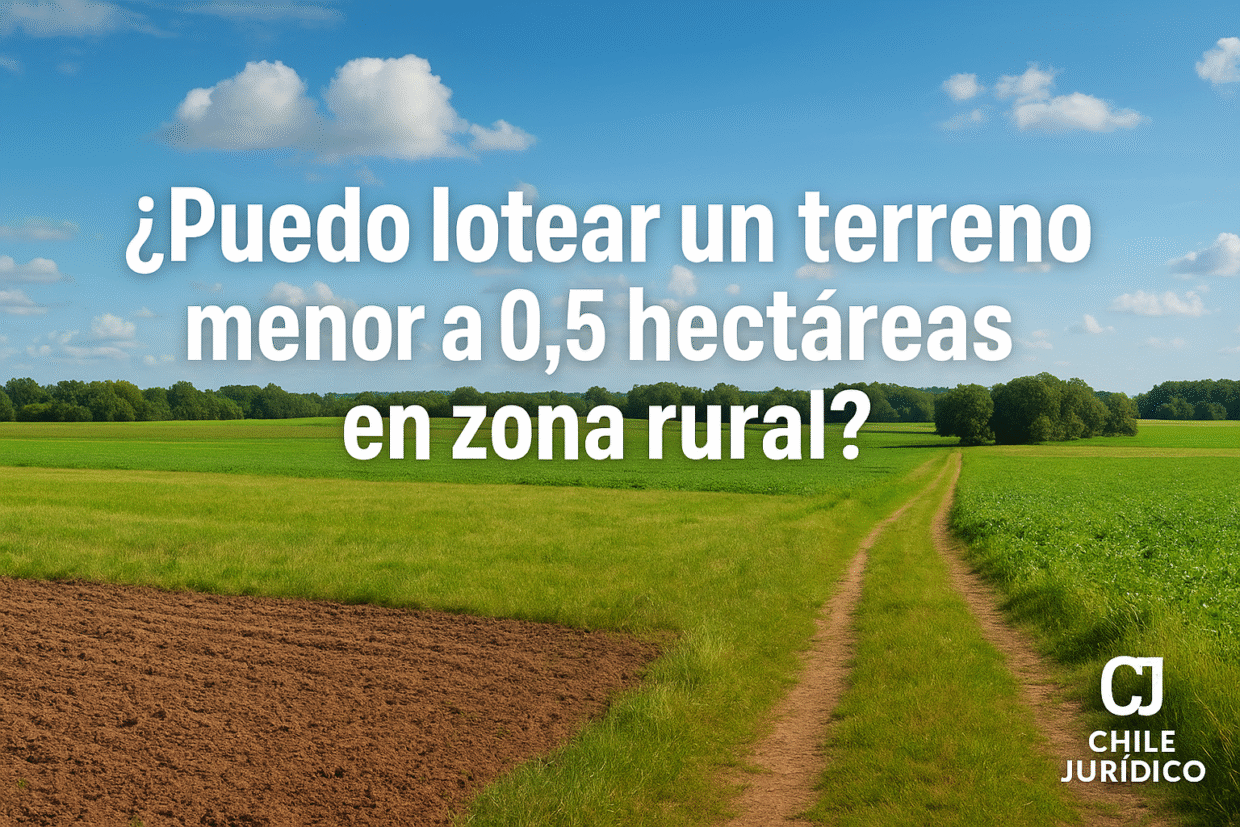 El Decreto Ley N° 3516, que regula la subdivisión de predios rústicos, establece que los terrenos rurales solo pueden subdividirse cuando cada nuevo lote tenga una superficie igual o superior a 0,5 hectáreas.